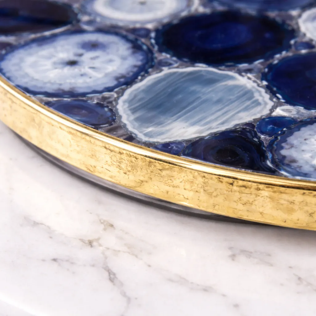Is a stunning combination of functionality and luxury design. Handcrafted from natural agate stone, each piece features unique blue patterns and is finished with premium electroplated metallic edges for a sophisticated look.