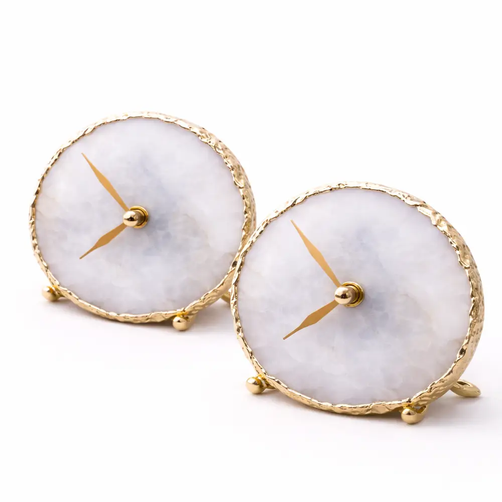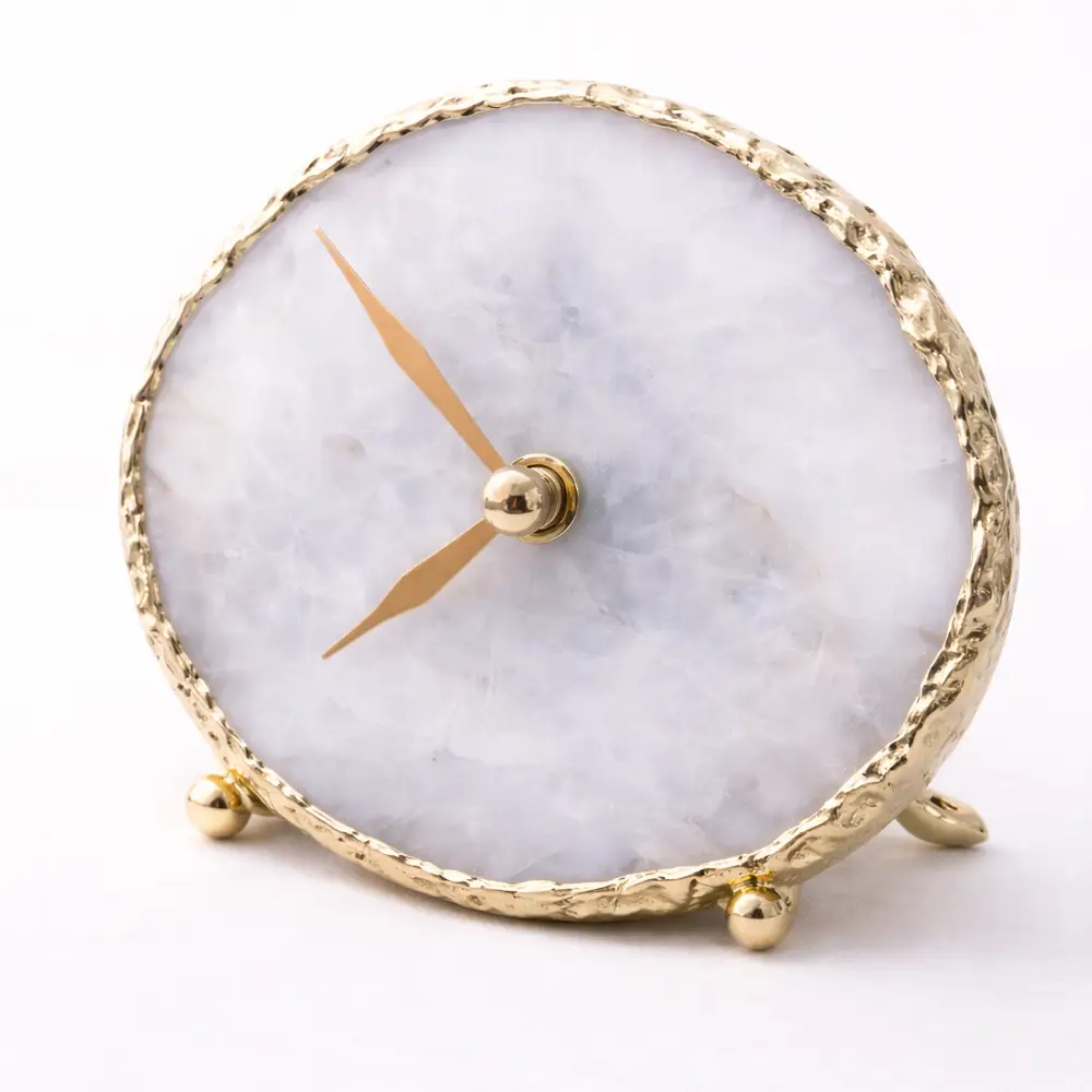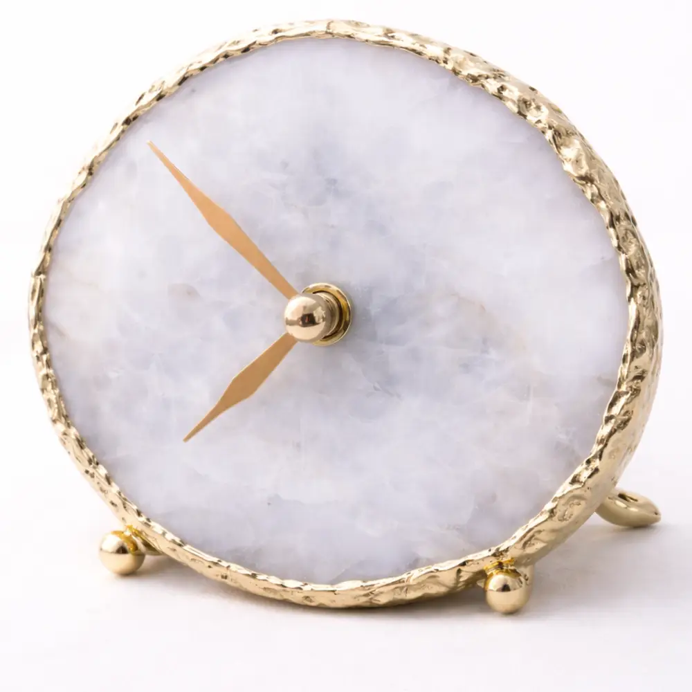 White Agate Clock – Luxury Desk & Wall Natural Stone Clock